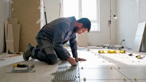 Pose complète : chape, ragréage, carrelage, parquet, dalle, PVC. Du nivellement précis à la finition soignée pour un sol impeccable et résistant.